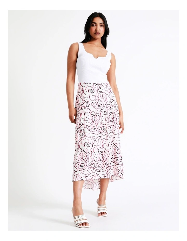 Elevate your everyday wear with a beautiful flowing skirt. This skirt has a mid rise cut and tiered silhouette, with an all-over rose print that you’re sure to love. Wear it with your fave tank top for the perfect daytime look.