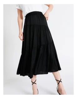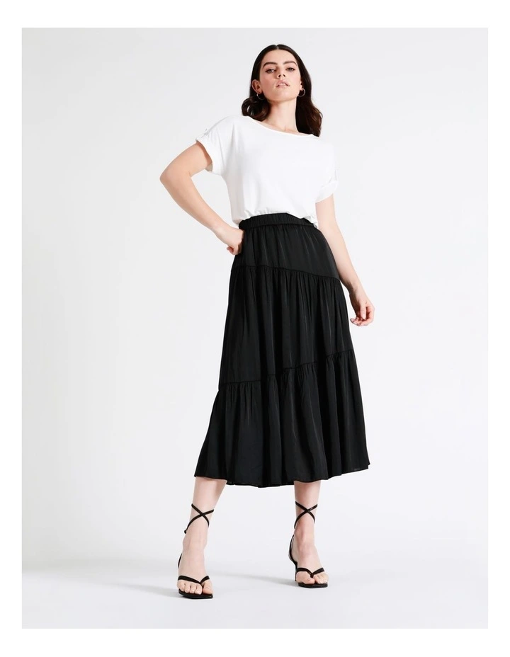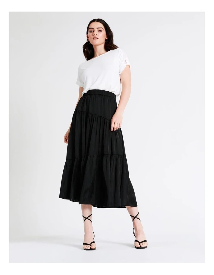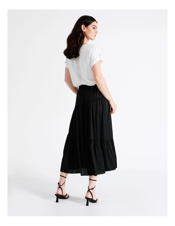 Complete your wardrobe with a fashion-forward skirt. This skirt has a flowing, tiered design with a mid-rise cut for comfort. Wear it from day to night.