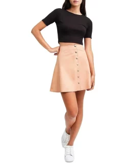 TheΒ Into The Woods Leather Mini SkirtΒ byΒ Belle & BloomΒ is the perfect staple piece to add to your wardrobe this season.Β In a feminine A-line silhouette, this classic style features a leather construction, high waist and delicate snap button front closure.