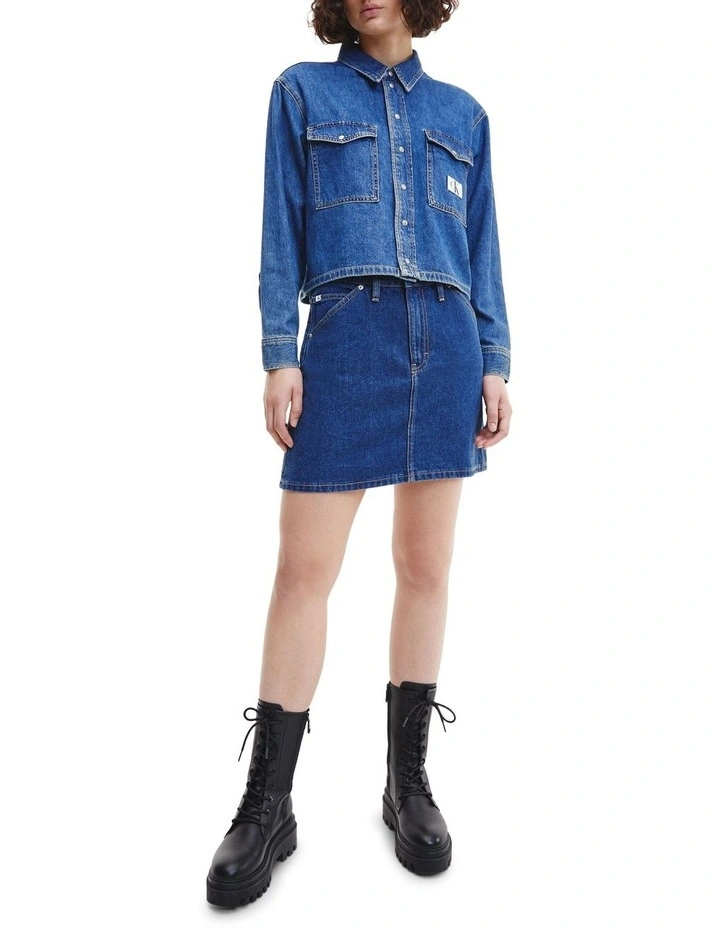 This skirt is created with lower-impact techniques that use less water and less energy than traditional denim.