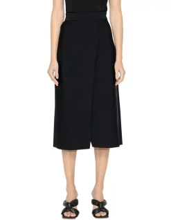 Made from a contrasting viscose blended yarn, this double-faced midi wrap skirt adds a fun pop of colour to your outfit. Available in black with blue contrast, and plum with orange contrast. finished with a narrow waistband and cutaway hem, and fastened with an invisible zip at the centre back. Made in China.