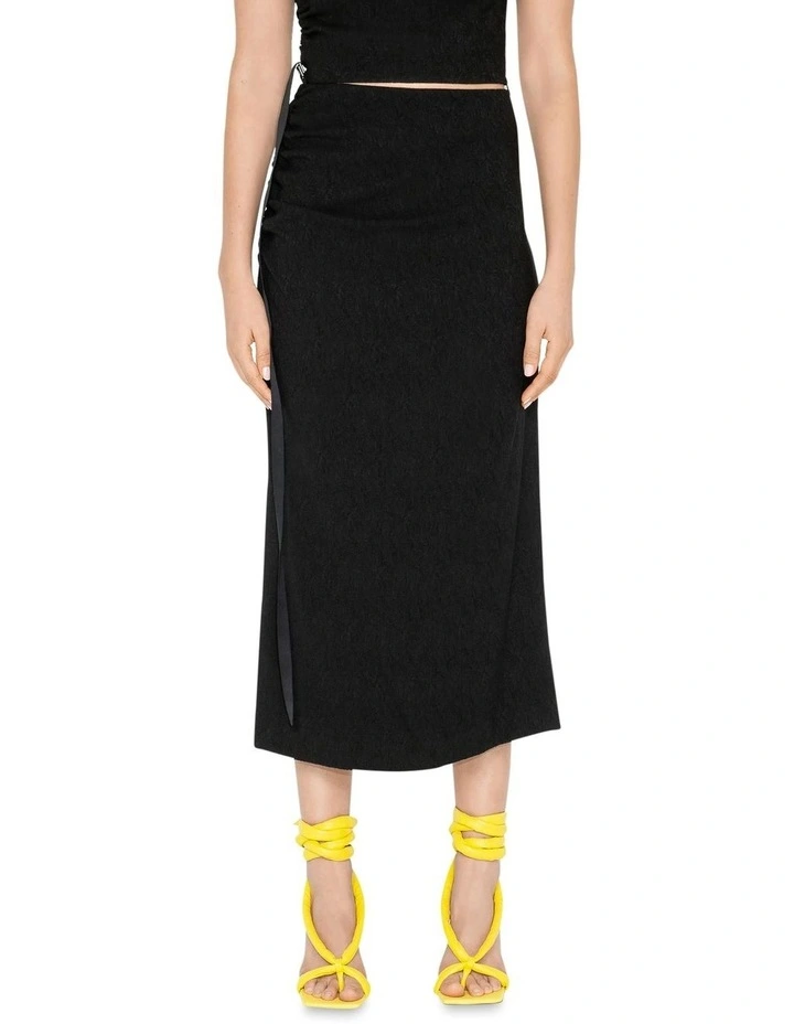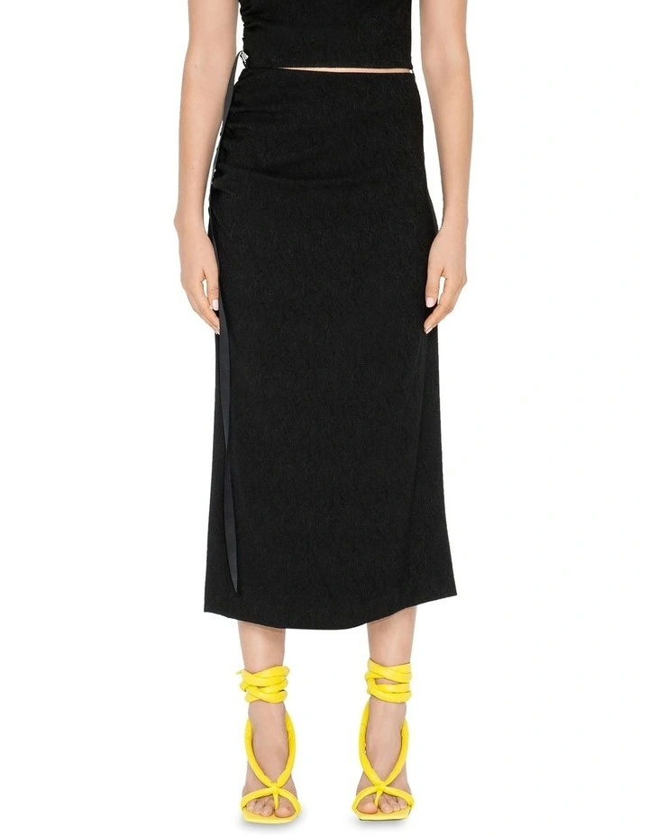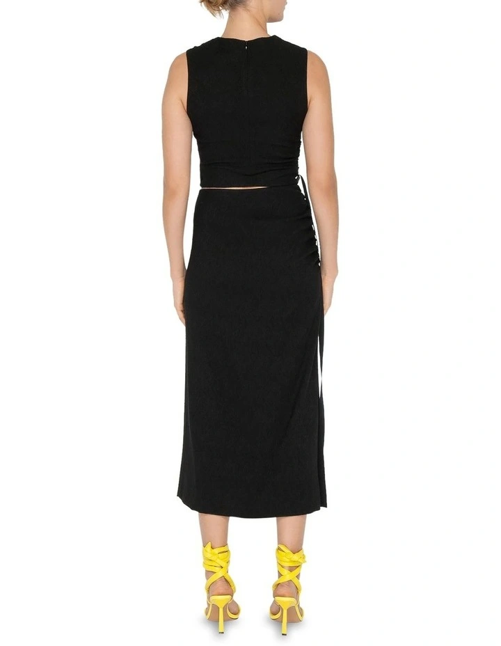 Crafted from light textured jacquard, this minimalist silhouette and soft texture will make it one of your most versatile pieces. Ruched at the waist to create a flattering silhouette. Pair it back with the texture jacquard top or with modern shirting. Made in Australia.