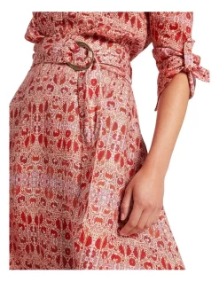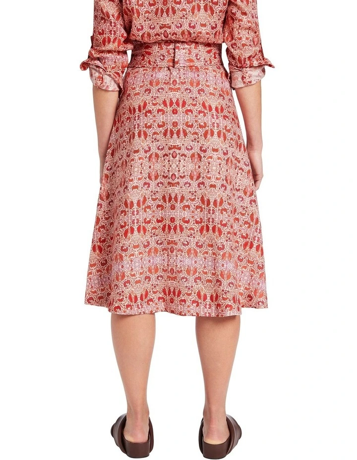 Drawing you in with its captivating print, this midi skirt continues to appeal with its full A-line shaping, which is made all the more flattering by flowing, lightweight linen. Defining the waist using a broad fabric belt with gold O-ring closure, the skirt delivers additional design detail in its side seam invisible zip and handy hidden pocketing at the hip.