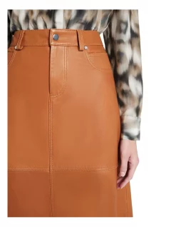 Flaunting a rich toffee colouring, this fully lined leather skirt reveals essential autumn-winter styling, curving close over the hips to a flared A-line shape at midi length. Made from buttery soft leather, the skirt fastens at the front with a zip and press stud closure, to show off additional detail in belt loops at the waist, pocketing front and back, and a centre-front split at the hem.