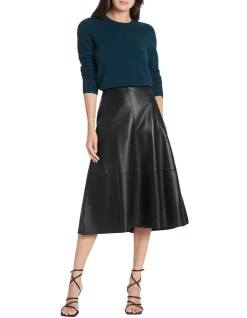 Flaunting a rich toffee colouring, this fully lined leather skirt reveals essential autumn-winter styling, curving close over the hips to a flared A-line shape at midi length. Made from buttery soft leather, the skirt fastens at the front with a zip and press stud closure, to show off additional detail in belt loops at the waist, pocketing front and back, and a centre-front split at the hem.
