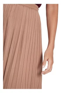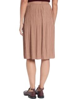 Moving easily through softly flowing fabric, this midi skirt uses intricate pleats to create a sense of movement through flattering straight shaping. Fully lined, the skirt features a fixed waistband with an invisible zip closure at centre-back, while remaining easy to pair in a neutral nutmeg colouring with a slight sheen through the fabric.