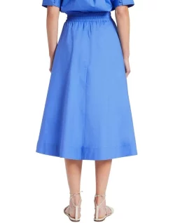 Descending through relaxed A-line shaping, this indigo denim midi skirt offers up essential styling for summer, made from Eco Wash Australian cotton denim. Accentuated by contrast topstitching throughout, the skirt continues to appeal with handy belt loops at the waist, pocketing front and back, and a classic button and concealed fly closure at the front.