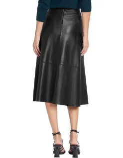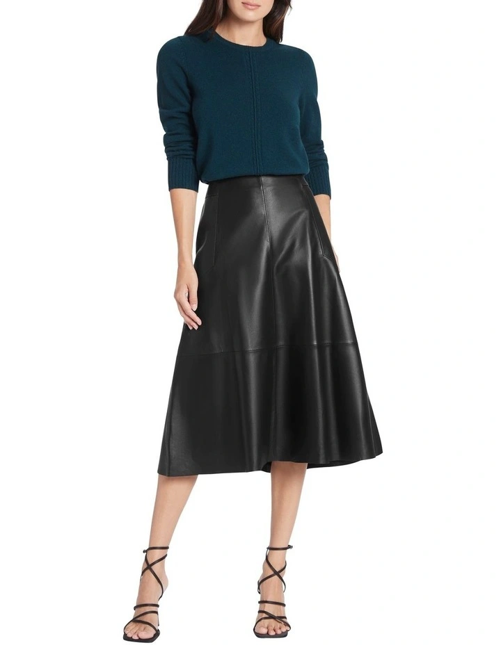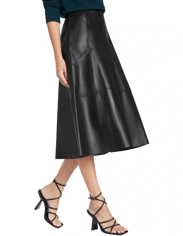 An absolute essential this season, this black leather skirt flatters effortlessly as it pairs back easily within your autumn-winter wardrobe. Made from buttery soft leather, the skirt flows through A-line shaping from a concealed waistband to midi length, showing off panel shaping throughout, and finished with an invisible zip closure at centre-back.