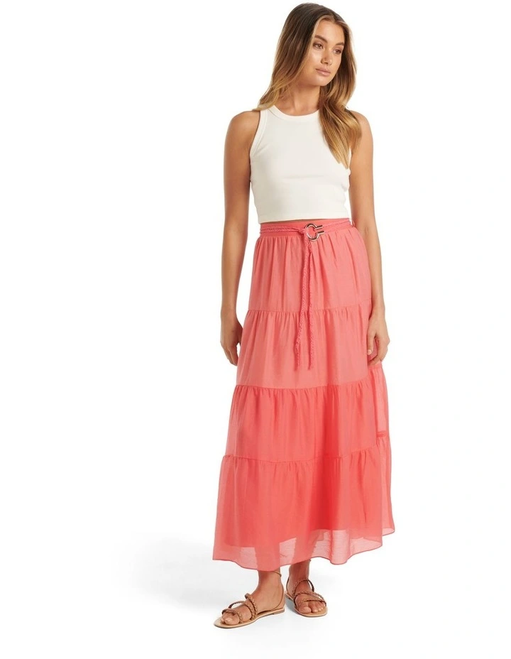 Feminine design meets trending style. The Maia Tiered Belted Midi Skirt from Forever New is the piece your wardrobe’s been waiting for.