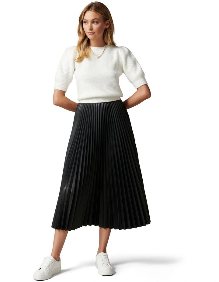 Feminine design meets trending style. The Stevie Faux Leather Pleated Skirt from Forever New is the piece your wardrobe’s been waiting for.