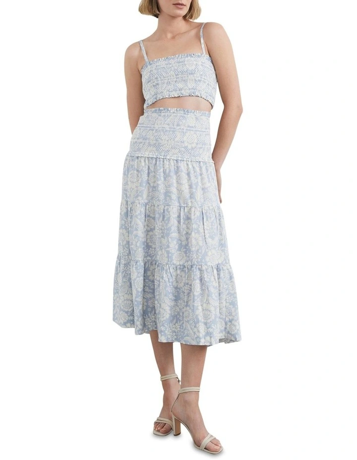 For a dreamy summer look, it doesn’t get better than our Foulard Shirred Midi Skirt. Made from a lightweight fabric, this tiered skirt features ruffles, shirring and a stunning feminine print. Style with our Foulard Shirred Top and Carrie Leather Heel. Our model wears a size AU 8/XS. She usually wears a standard AU 8/Extra Small, is 180cm tall, and has a 86cm bust, 95cm hips and 69cm waist.