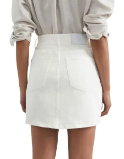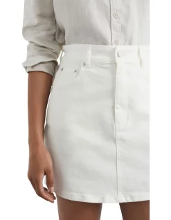 Our High Rise Denim Skirt is a must-have staple in your warm weather wardrobe. Made from the same fabrication as our much-loved Girlfriend Jean, this on-trend skirt features front slant pockets, a branded metal shank button and natural stretch. Style with our Twill Double Breasted Blazer and Darcie Leather Loafer. Our model wears a size AU 8/XS. She usually wears a standard AU 8/Extra Small, is 180cm tall, and has a 86cm bust, 95cm hips and 69cm waist.