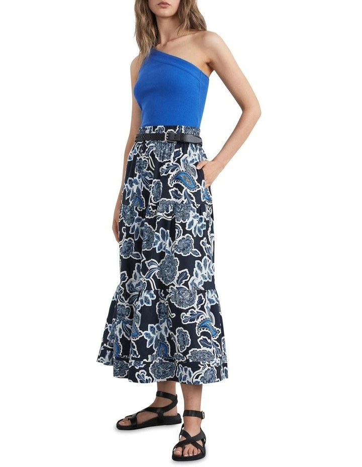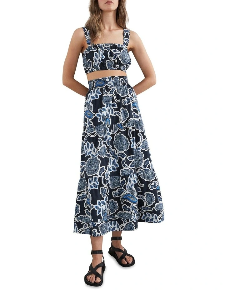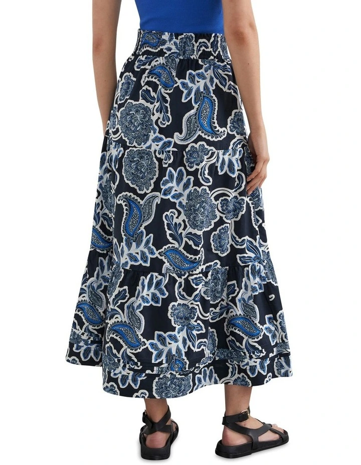 Our Moroccan Tiered Midi Skirt is a perfect summer statement piece. Featuring a tiered design with frill detail, shirred elasticated waist and side pockets. Pair with our One Shoulder Tank and Riva Leather Sandal. Our model wears a size AU 8/XS. She usually wears a standard AU 8/XS, is 179cm tall, and has a 84cm bust, 94cm hips and 61cm waist.