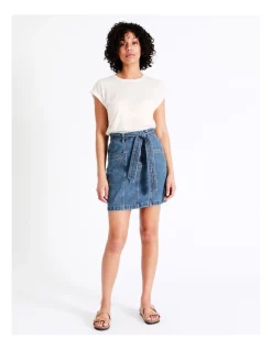 Grab DenimΒ Recycled Blend Belted Denim Skirt in Pool Blue