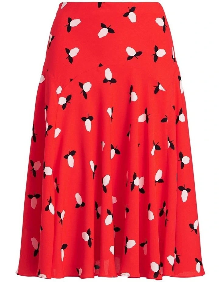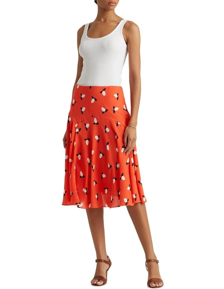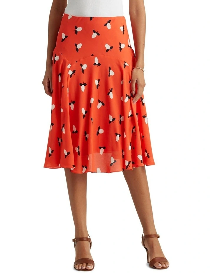 Crafted from lightweight georgette for an effortless drape, this sweeping A-line skirt features a godet panel for ease of movement, while the season’s floral print provides a feminine finishing touch.