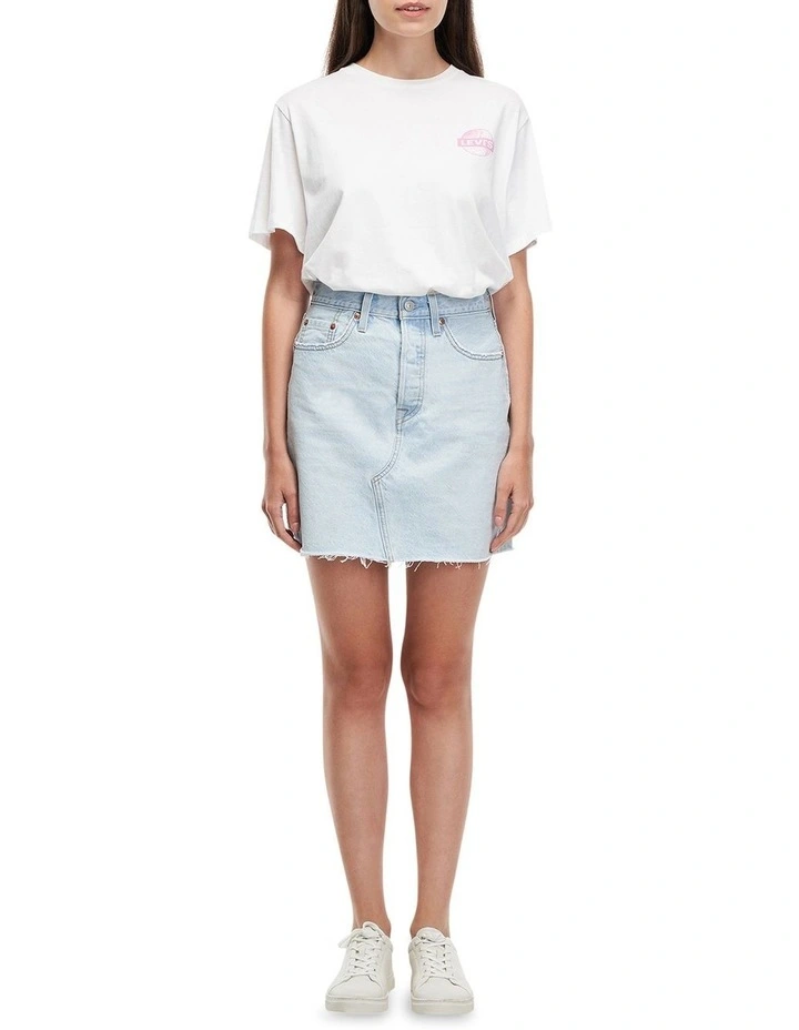 The classic mini skirt, altered to perfection, For an effortlessly cool-girl look, all you need is this classic high-waisted mini skirt. Designed in a flattering high rise with a versatile length you can wear all year long, edgy frayed hem, iconic leather patch at back waist.