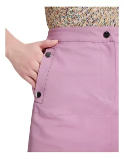 Revealing soft A-line shaping within a flattering stretch cotton blend, this is the mini skirt you will want to wear everywhere this summer. Unlined, the skirt shows off an orchid colouring, while featuring a concealed zip front closure with snap button fastening, and further snap button detailing at the hip pockets.