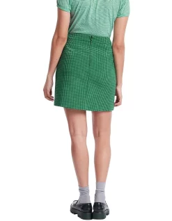 Showing off a vibrant green check, this cute mini skirt flatters with its classic A-line shaping, while promoting easy movement thanks to its stretch cotton-blend European fabric. Fully lined, the skirt keeps detail elsewhere discreet, featuring faux welt pockets at the hip, a neat fixed waistband, and an invisible zip closure at centre-back.