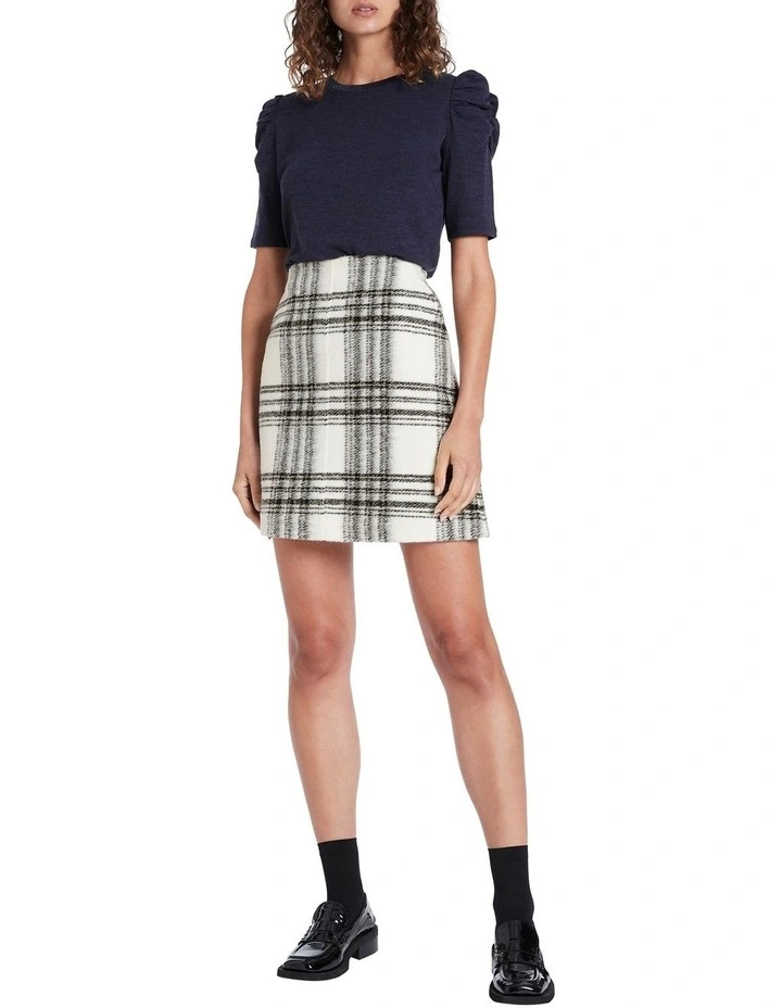Sure to become a go-to piece through autumn and winter, this ivory mini skirt is made from a wonderfully soft wool blend, featuring full lining for added comfort. Revealing a large black check, the skirt descends through a concealed waistband to show off a neat fit, with further detail offered in angled pockets at the hip and a centre-back invisible zip closure.