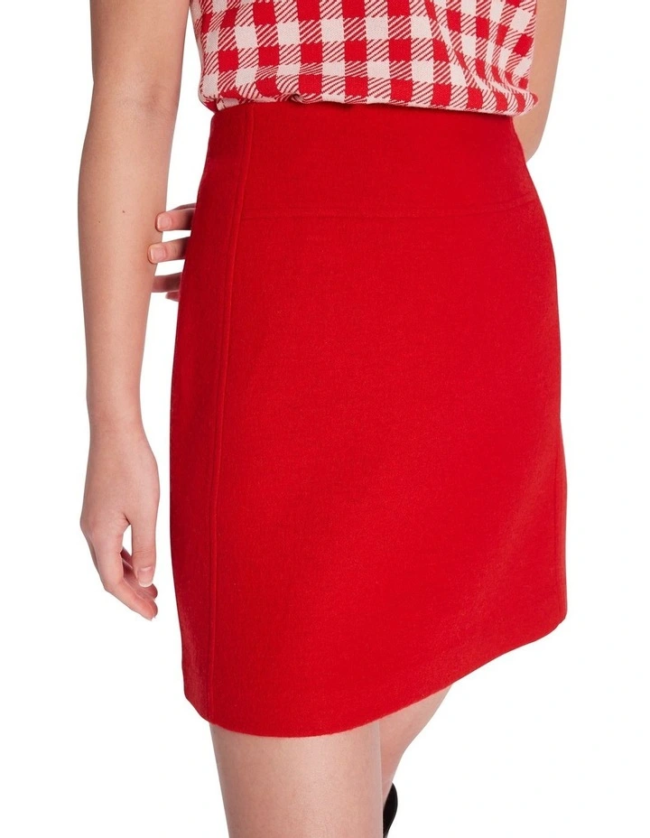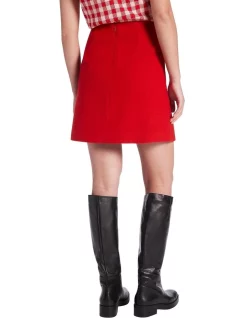 Revealing a captivating shade of scarlet, this wool mini skirt is super soft in pure Australian Merino wool, featuring full lining for ease of movement. Using a concealed waistband to create a clean A-line silhouette, the skirt is further enhanced by panel detailing through the front, while fastening at centre-back with an invisible zip closure.