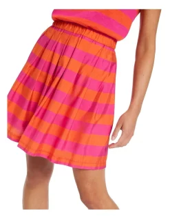 Flaunting a bold, bright stripe that plays across the horizontal, this mini skirt creates a lightweight, summery look, perfectly accentuated by vibrant shades of paw paw and pink. Fully lined for movement, the skirt flows through a voluminous, lightweight design, featuring cased elastic at the waist to generate pleats through the body,Β completed by a side invisible zip and hip pockets.