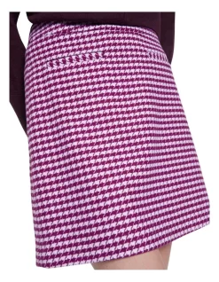 Flattering effortlessly within flared A-line shaping, this mini skirt cant help but catch the eye, thanks to its bold houndstooth design in magenta and ivory. Offering statement styling when paired with the collections Mosman Dogstooth jacket, the skirt looks just as cute on its own, finished with pocket detailing at the hips and a centre-back invisible zip.