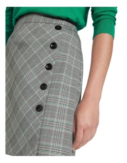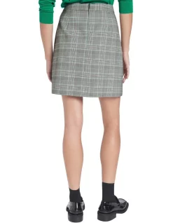 Flattering effortlessly within a soft A-line silhouette, this mini skirt reveals faux wrap styling, accentuated with panel detailing and a contrast button feature. Fully lined to allow for ease of movement, the skirt shows off a grey-toned plaid that can either be worn with the collections complementary blazer, or alternatively paired back within your wardrobe.
