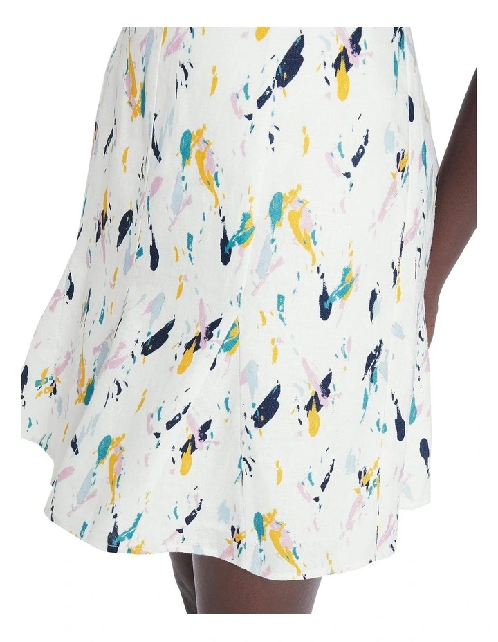 Showing off a soft, flippy effect, this skirt curves close through the hips, before flaring out at the hem, where godets create volume. Lined with cotton, the skirt is made from pure, lightweight linen, featuring a colourful paint stroke print against an ivory base. The skirt fastens with an invisible zip at the side seam to retain clean lines throughout.
