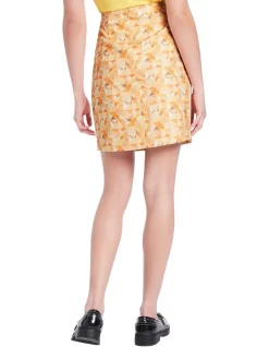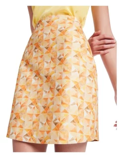 Revealing flattering A-line shaping, this mini skirt moves easily through stretch cotton, while featuring full lining for ease of movement. Showing off an abstract print in soft orange hues, the skirt creates a neat design thanks to its internal waistband, while fastening at the back with an invisible zip closure, to retain clean lines throughout.