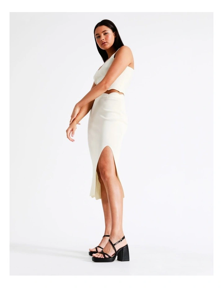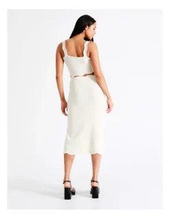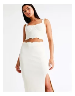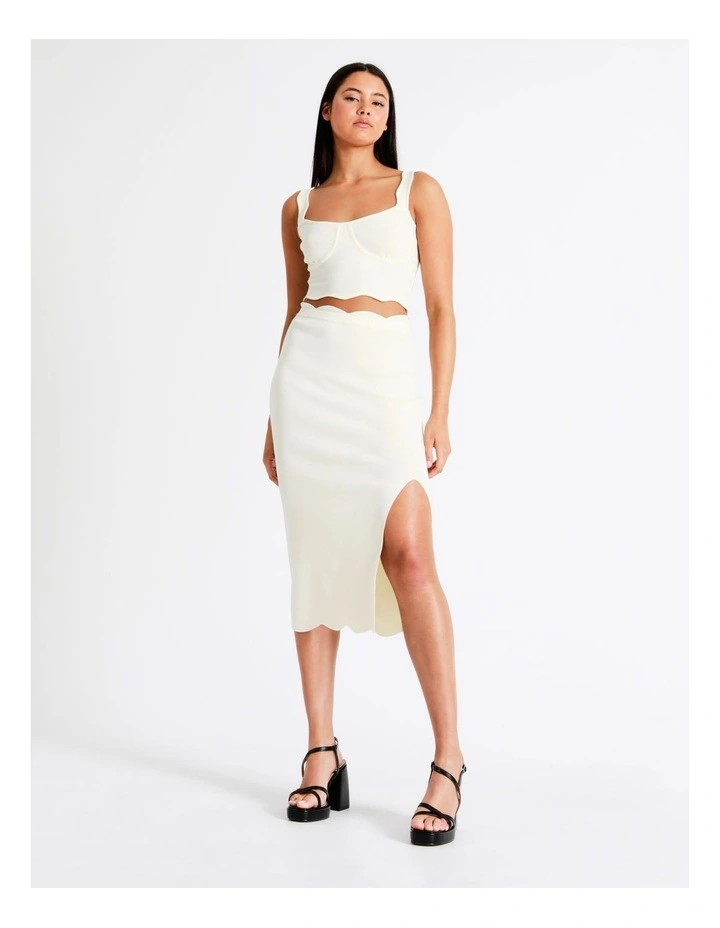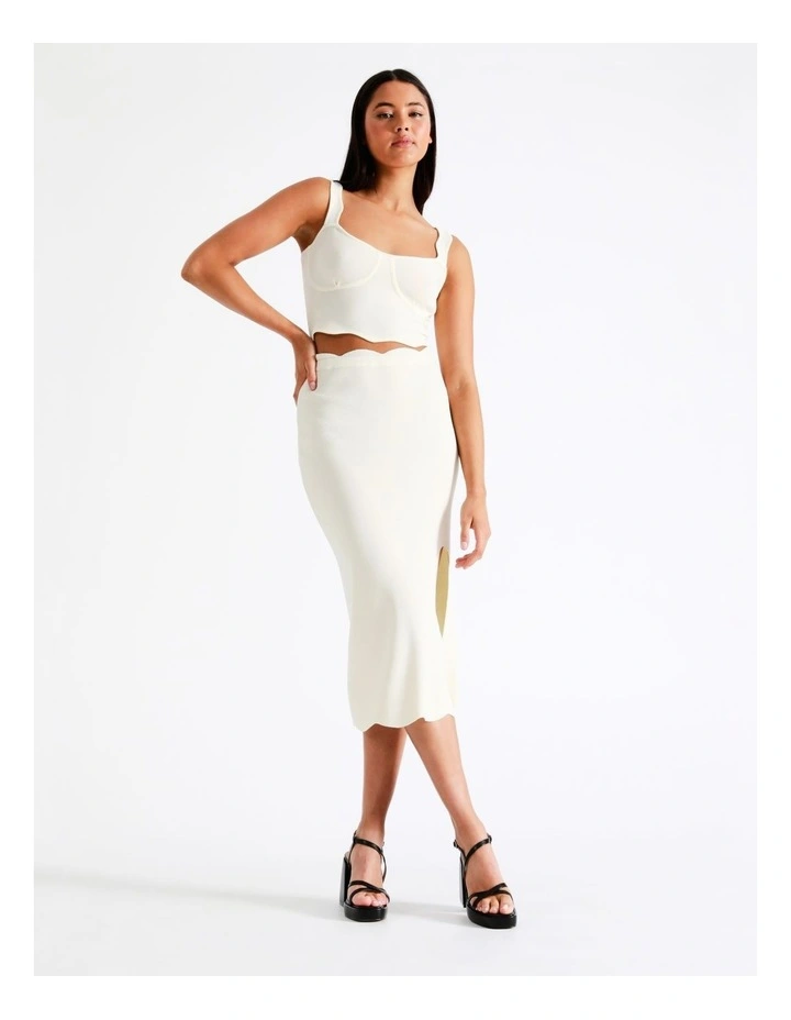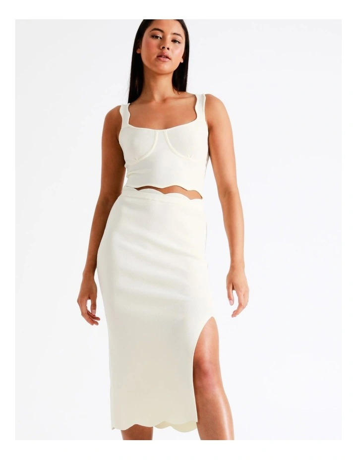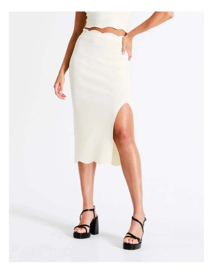 Miss ShopΒ Eco Scallop Edge Knit Midi Skirt in Ivory