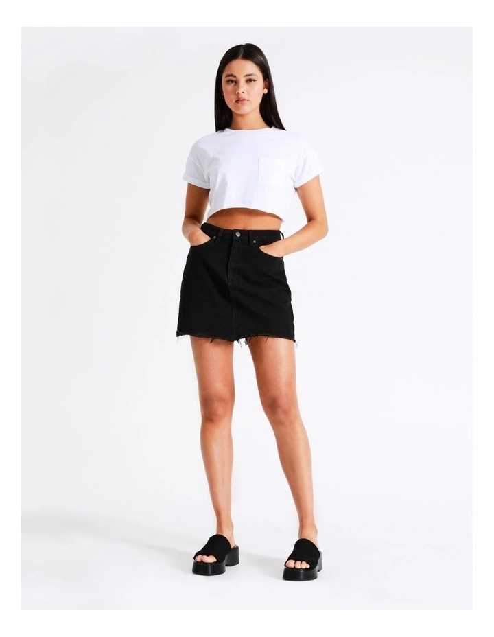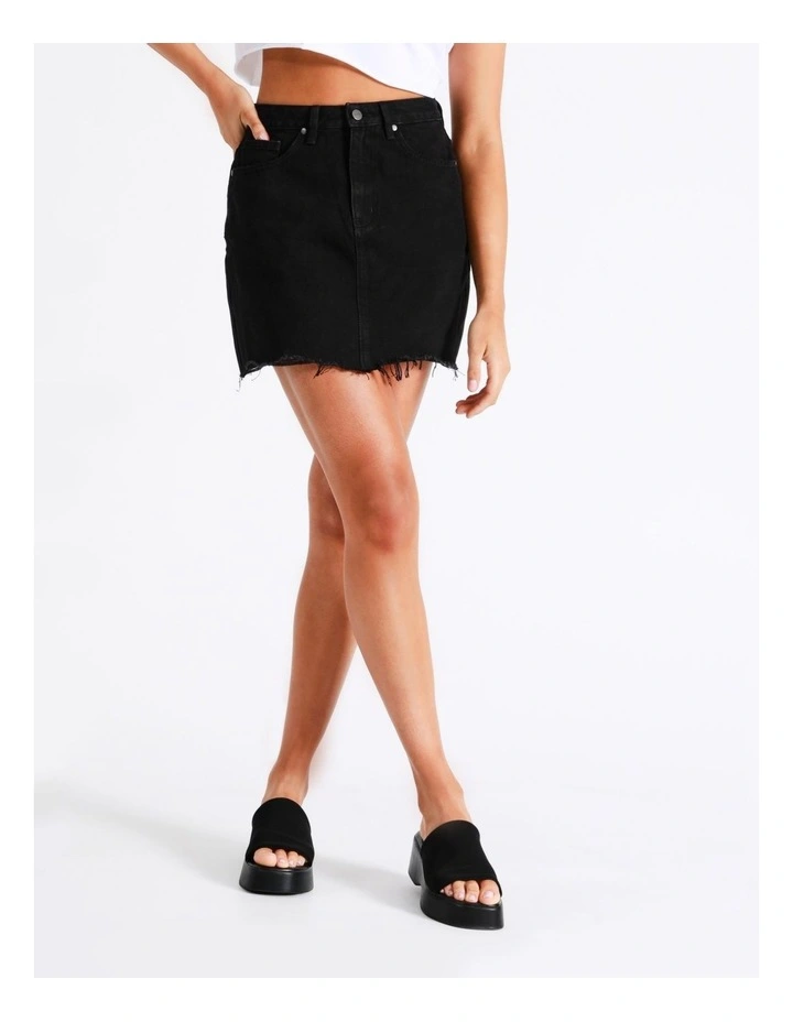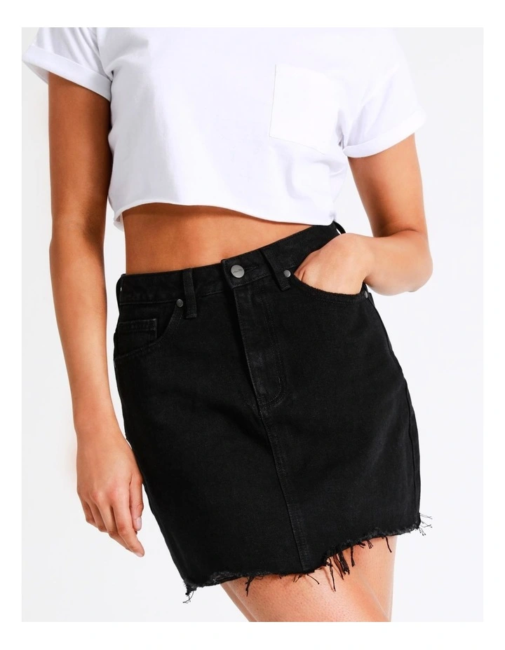 Miss ShopΒ Recycled Blend Raw Hem Denim Skirt in Black