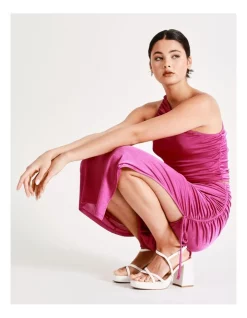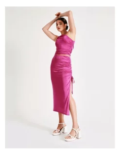Miss ShopΒ Recycled Blend Ruched Split Midi Skirt in Rose Violet