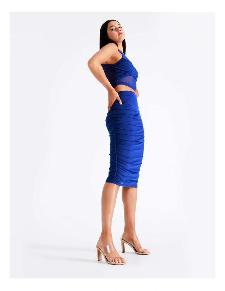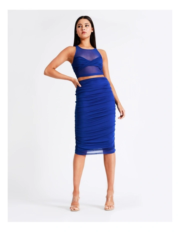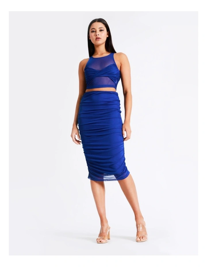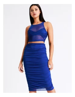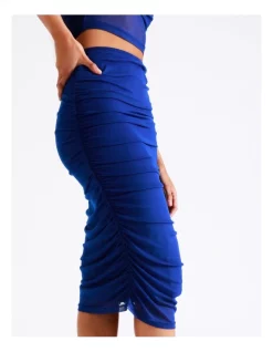 Get ready for your next night out. This midi skirt is ultra-flattering and alluring, with a mesh finish and ruching at the sides. Wear it with the matching top for the perfect look.Β