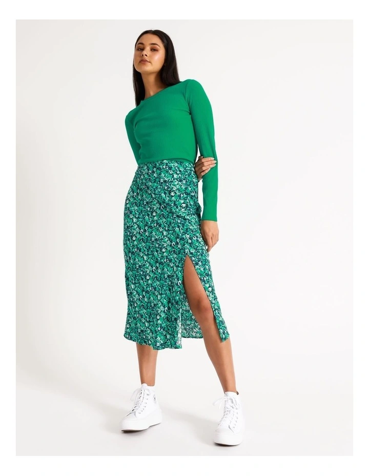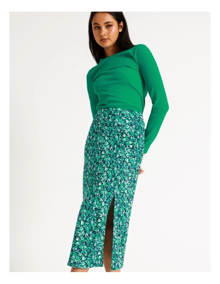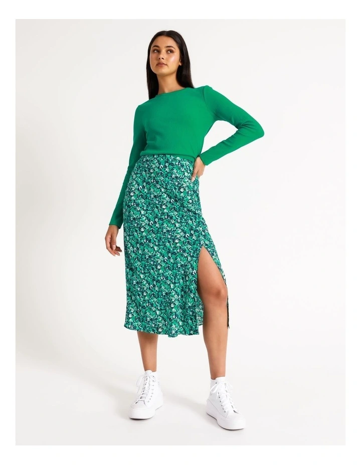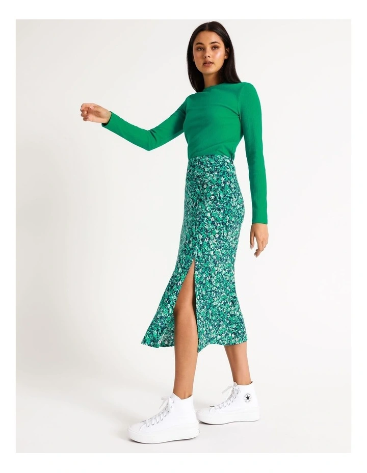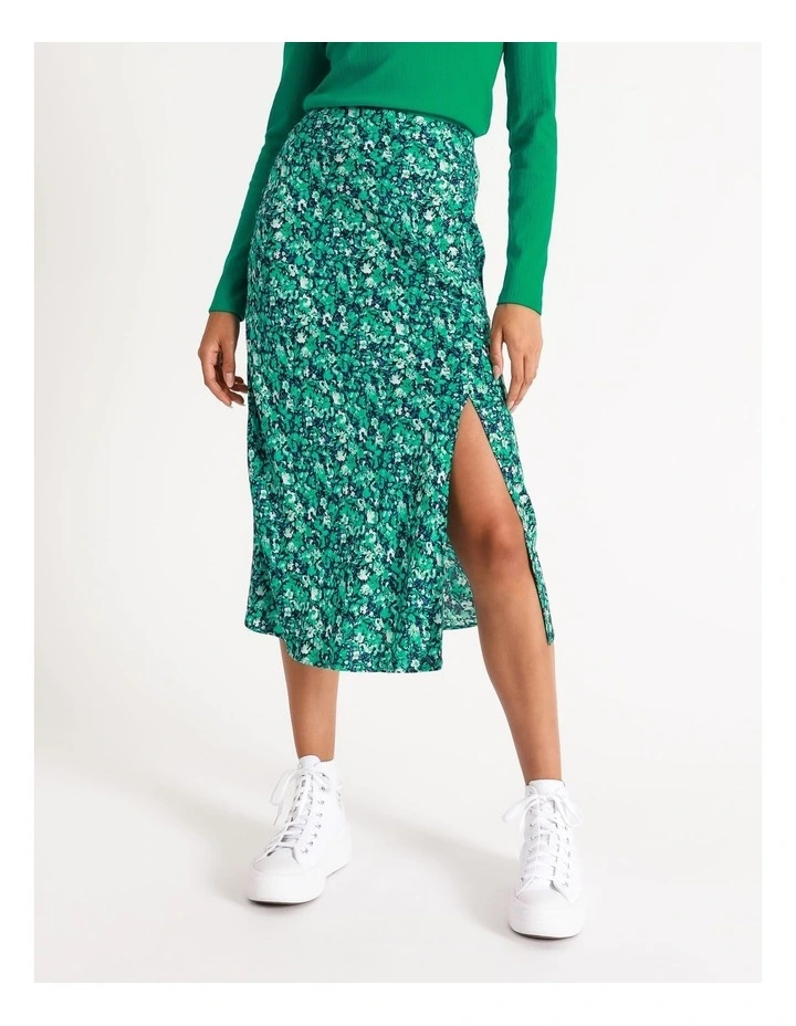 Elevate your look with a fashion-forward slip skirt. This skirt is decorated with an all-over print, alongside a front split and high waisted cut. Wear it with sneakers for an elevated casual look, or with heels for an event-ready finish.