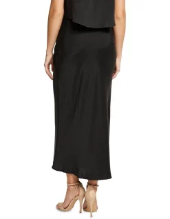 Effortless and chic, the Adele Bias Cut Silky Stretch Skirt is a timeless look for any occasion. This long and flowy skirt is crafted from a soft tencel blend with a subtly shiny finish. It sits at a mid-rise and has an invisible side zipper. Wear it with the matching Mara Top and some heels.