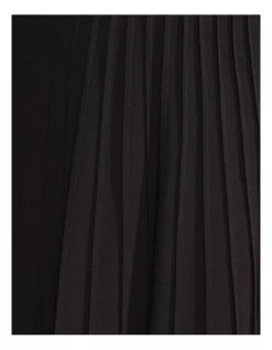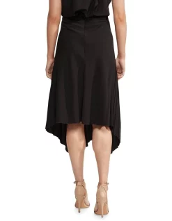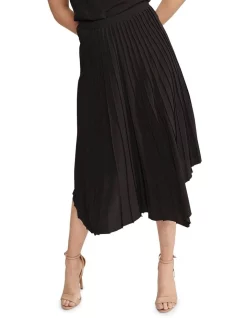 Effortless and chic, the Ecland Pleated Skirt is a timeless look for any occasion. This elegant mid-length skirt has a flowy design with a fitted waist, asymmetrical hemline, pleating through the front, and invisible back zip. Wear it with the matching Hail Top and some strappy wedges.