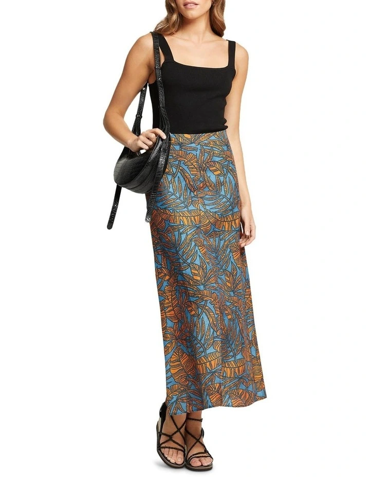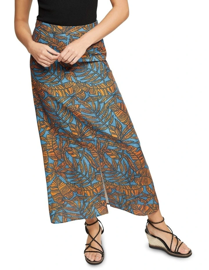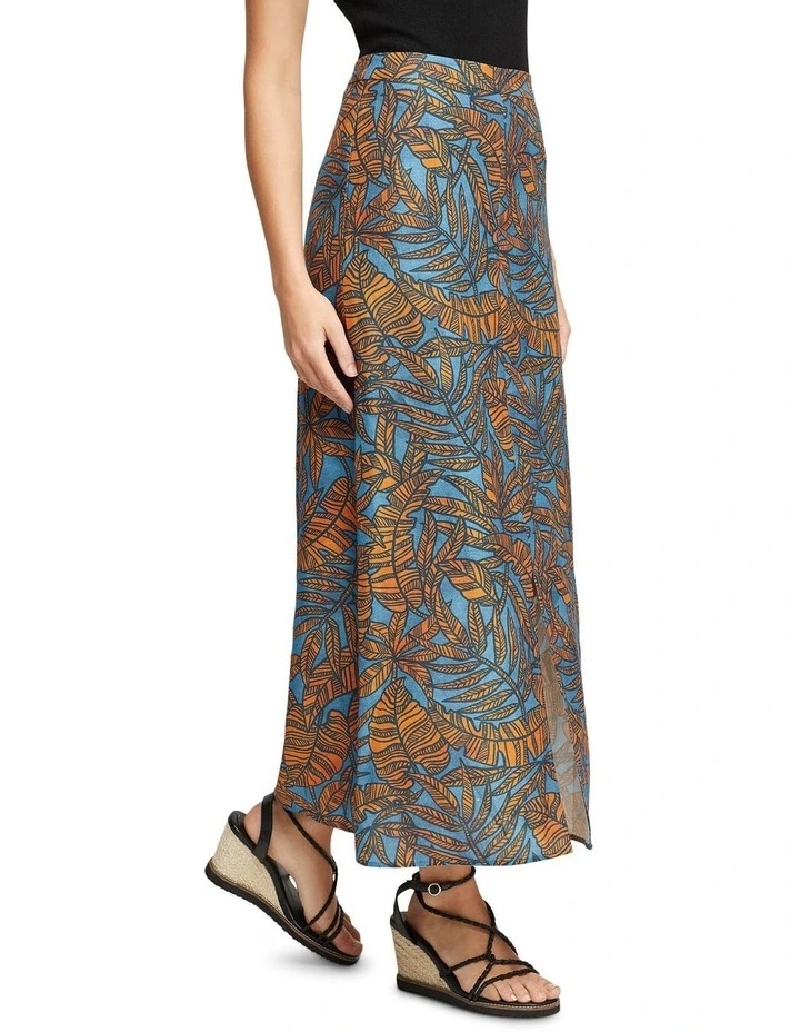 Let the season guide your style with the Overboard Tropical Print Skirt. This effortless skirt is crafted from a soft linen blend and cut in a slim fit. It features a vibrant tropical print and features a fitted waist, front split, invisible side zip and attached slip. Just add a basic top with some strappy sandals and a leather bag for the perfect summer look.