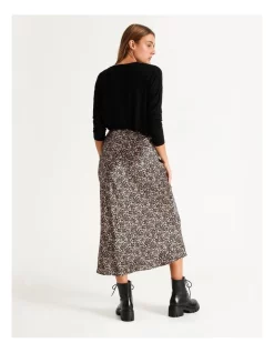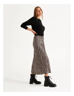Go from desk to dinner in a sophisticated slip skirt. This midi length skirt has a satin look finish alongside a high waisted cut and all-over animal print. A versatile piece, you can pair this skirt with all of your favourite blouses.
