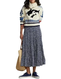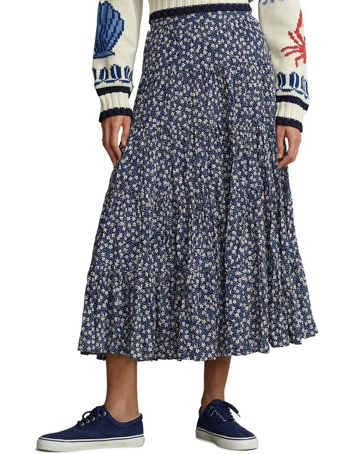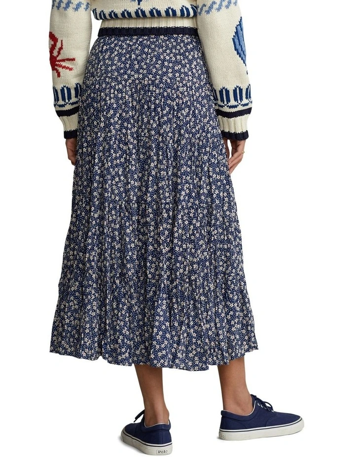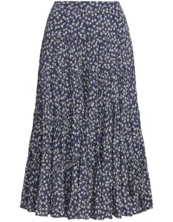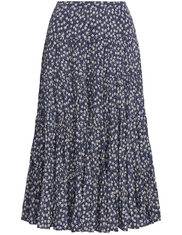Designed with four shirred tiers for fluid movement, this A-line skirt features a small-scale floral pattern to enhance its bohemian-inspired character.