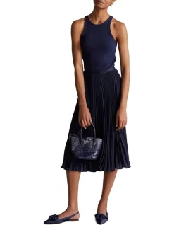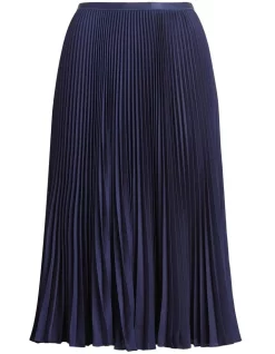 A sunburst-pleating technique enhances the fluid drape of this flared midi skirt, which is cut from lightweight georgette to ensure airy movement with each step. A-line silhouette. Intended to hit at the mid-calf. Allover pleats.