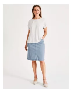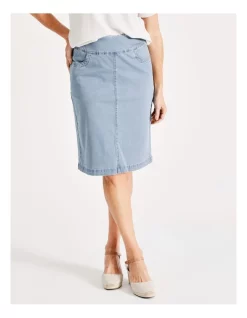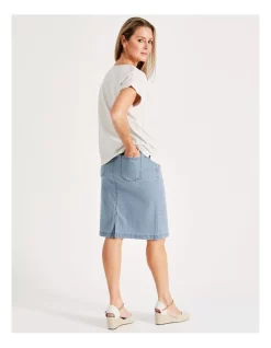 Every wardrobe needs a trusted denim skirt. This knee length skirt is made from soft materials for comfort, and boasts functional pockets. Perfect for daily wear.Β