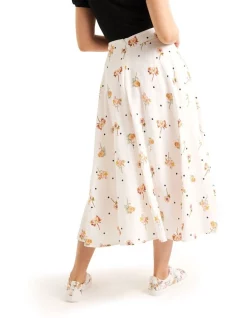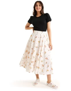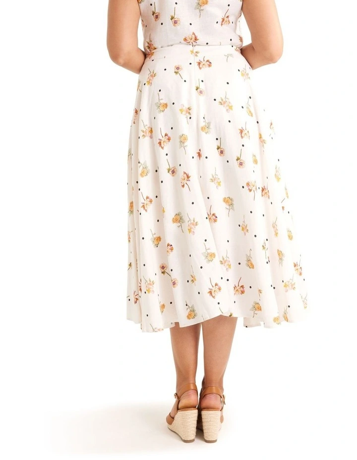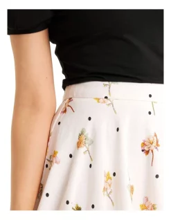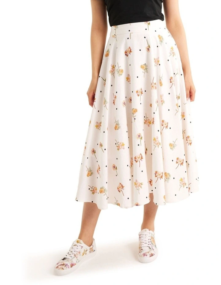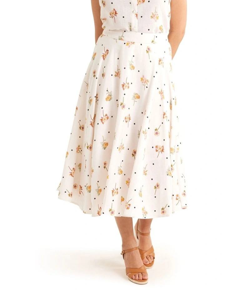 Introducing the Banksia Floral Skirt, a must-have for your spring wardrobe. This beautiful skirt is made from natural fabric and features a structured waistband for a flattering fit. The circular skirt has a soft, floaty silhouette that falls below the knee, making it perfect for Spring days out. The original banksia floral and spot print by Sam Michelle is eye-catching and unique. Wear with the matching Banksia Floral Shirt for a chic, coordinating look.