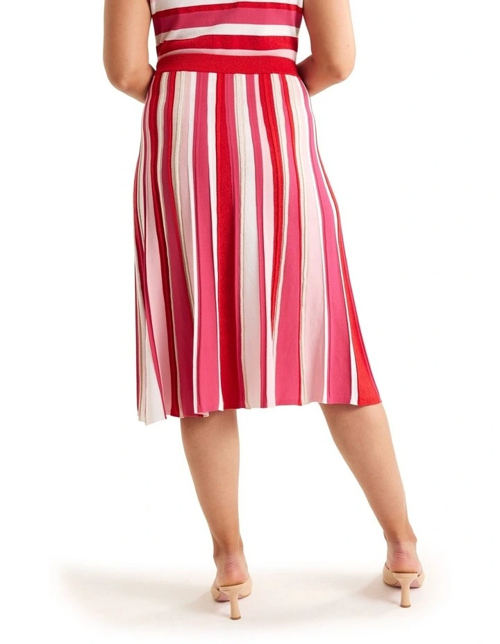 Introducing the Leni Stripe Knit Skirt, the perfect piece to add a touch of luxury to your wardrobe. This skirt is made from a viscose blend with metallic lurex yarn and features a multicolour textured stripe. It has a high waisted fit and falls just below the knee, giving you a flattering silhouette. The stretch fabric ensures a comfortable fit, making this skirt ideal for everyday wear. Dress it up with the matching Leni Stripe Knit Top or keep it casual with some crisp basics. Either way, you’re sure to turn heads in this stunning skirt.