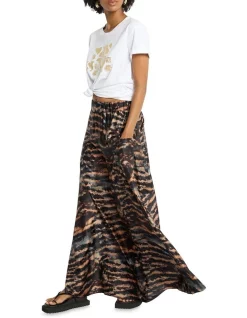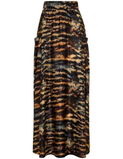 Sweeping to floor length, this maxi skirt flows through a swirling silk blend, creating a soft, lightweight look that is perfectly accentuated by a dramatic animal print. Featuring a broad elasticated waistband, the skirt sits comfortably at the natural waist, descending through voluminous A-line shaping, with further detail found in feature pockets at the thigh.