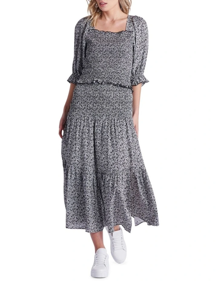 The Dayla skirt will fit seamlessly into your trans-seasonal wardrobe. The wide, shirred waistband gives a comfortable fit, and the light breathable viscose material drapes into an A-line silhouette.