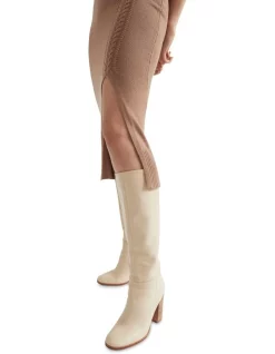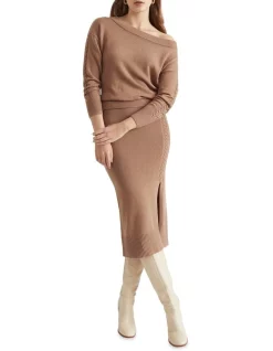 This knit skirt offers both style and comfort through the cooler months. With a cable detail and a side split, it falls to a midi length. The skirt is crafted from a stretch wool blend.