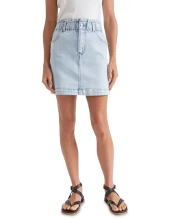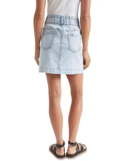With a paperbag waist and a mini length, this denim skirt speaks to sunny days ahead. Choose from multiple washes, all made with just the right amount of stretch. The skirt features classic hip pockets.