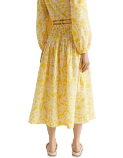 With an inverted yoke at the waist and a full, gathered cut, this skirt is a winner for the warmer months. It falls to a midi length and is crafted from pure cotton with a sunny floral print.