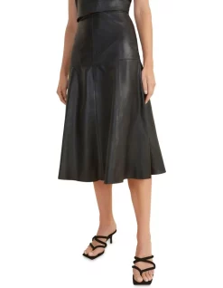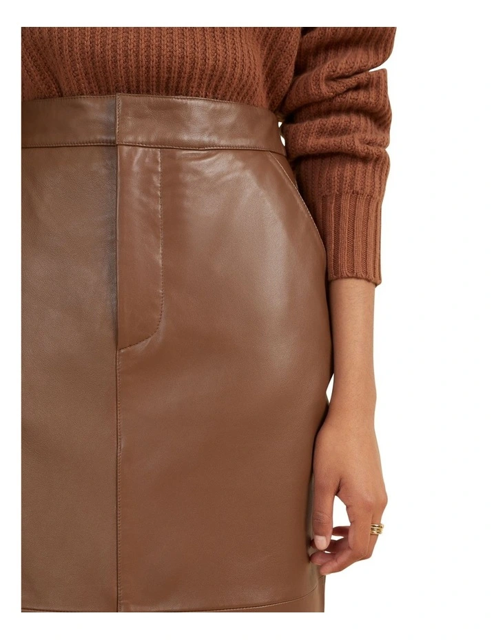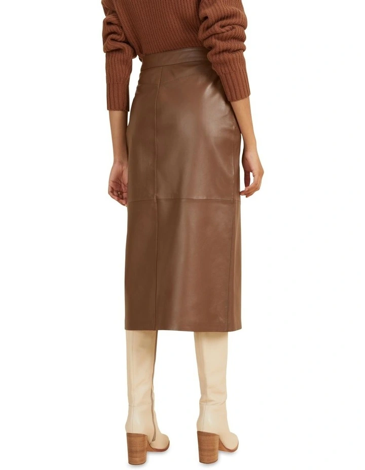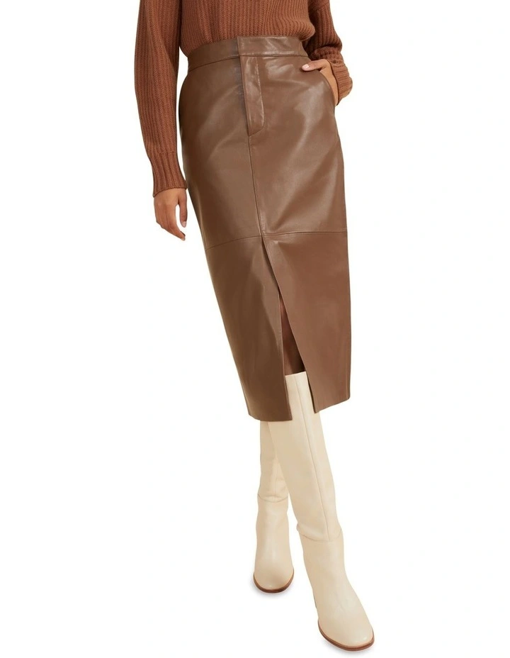 Crafted from premium leather and cut to a straight silhouette, this skirt is an outfit-maker. It features a centre-front split and a rear yoke. The skirt falls to a midi length and has a mid rise.