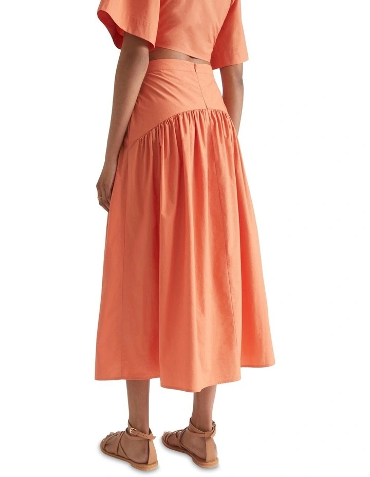 With an inverted yoke at the waist and a full, gathered cut, this skirt is a winner for the warmer months. It falls to a midi length and is crafted from a smooth 100% cotton poplin.